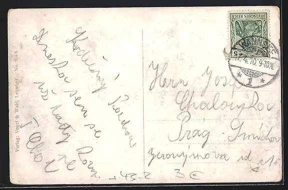 gelaufen 1910, Eckknick unten li., guter Zustand