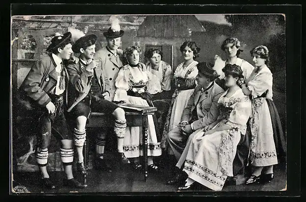 AK Männer und Frauen in Tracht am Tisch mit Zither