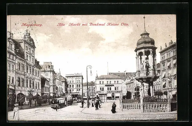 AK Magdeburg, Alter Markt mit Denkmal Kaiser Otto und Strassenbahn