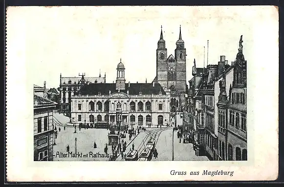 AK Magdeburg, Alter Markt mit Rathaus