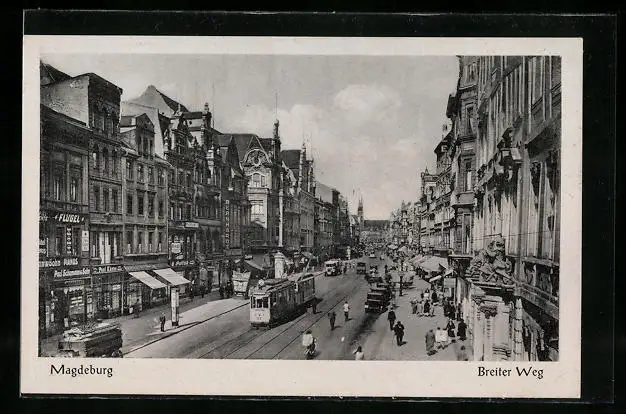 AK Magdeburg, Breiter Weg mit Strassenbahn