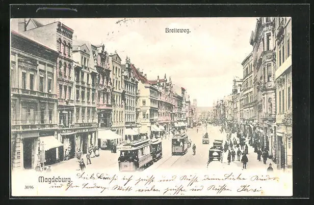 AK Magdeburg, Breiteweg mit Strassenbahn