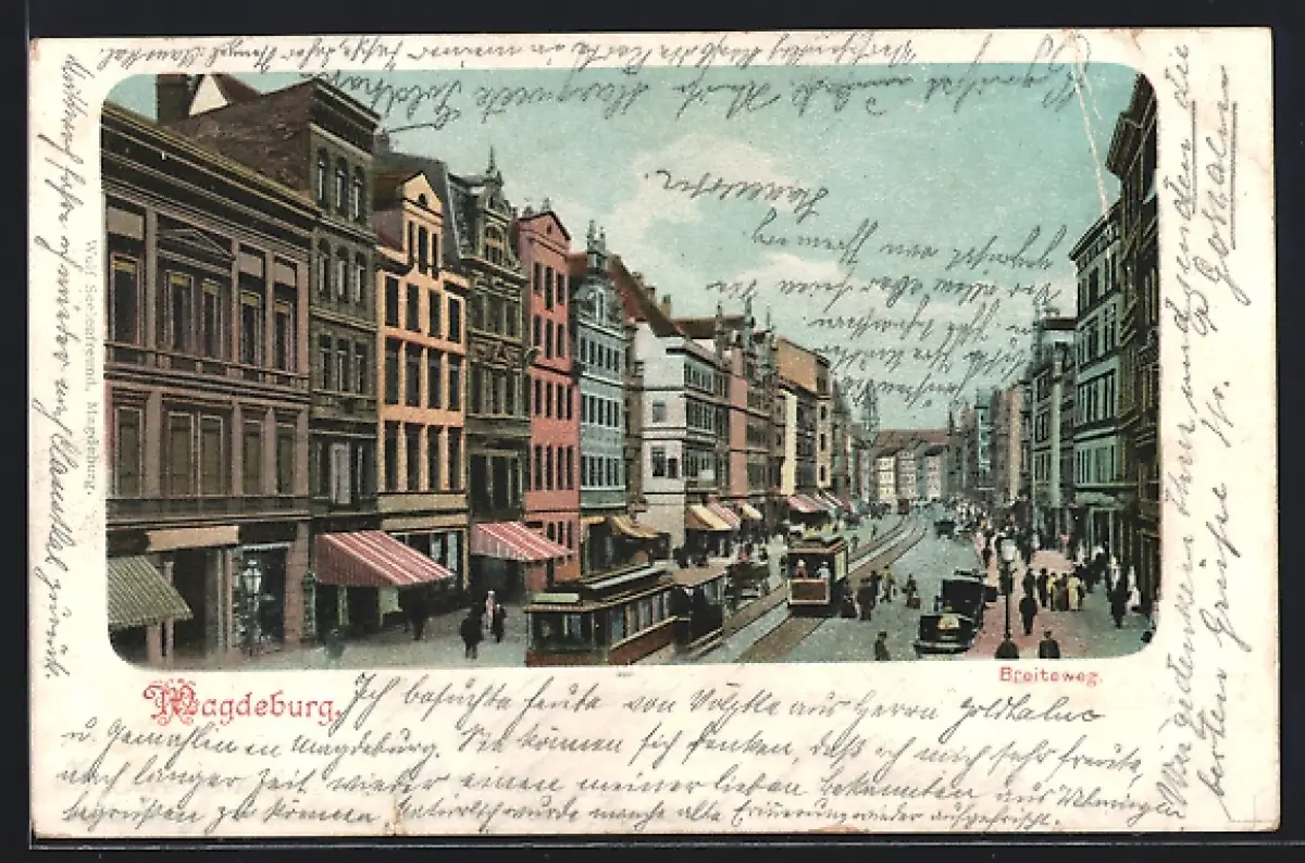 AK Magdeburg, Breiteweg mit Strassenbahn