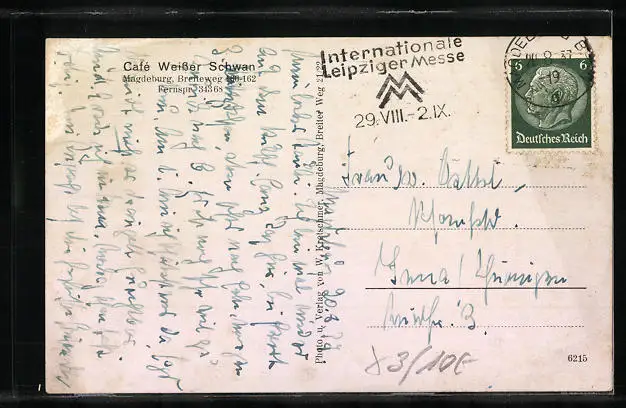 AK Magdeburg, Cafe Weisser Schwan im Breiteweg 160-162