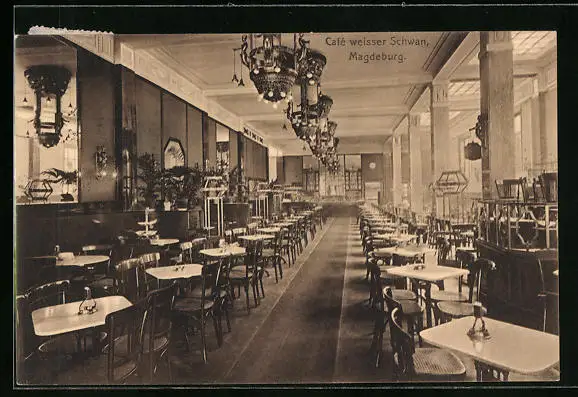 AK Magdeburg, Cafe weisser Schwan, Innenansicht