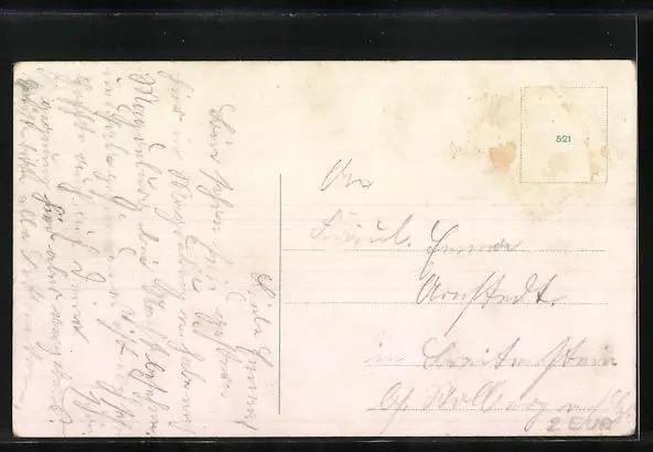 alte Ansichtskarte, ungelaufen, Briefmarke entfernt, rückseitig Oberflächenschaden, Eckknicke li. unten u. re. oben, Bugspur re. unten, guter Zustand