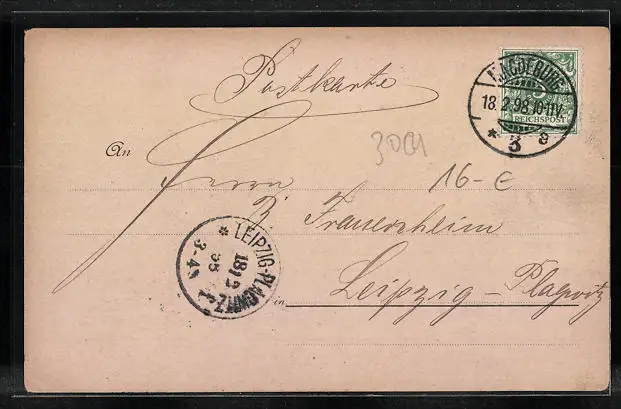 alte Ansichtskarte, gelaufen 1898, Eckknick re. unten, minimaler Einriss re. unten, Stempelspur, guter Zustand