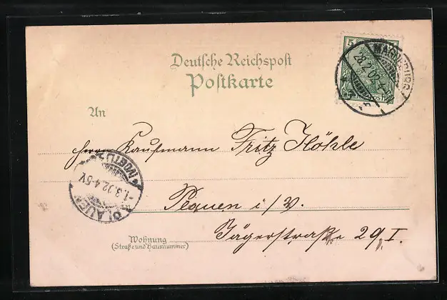alte Ansichtskarte, gelaufen 1902, guter Zustand