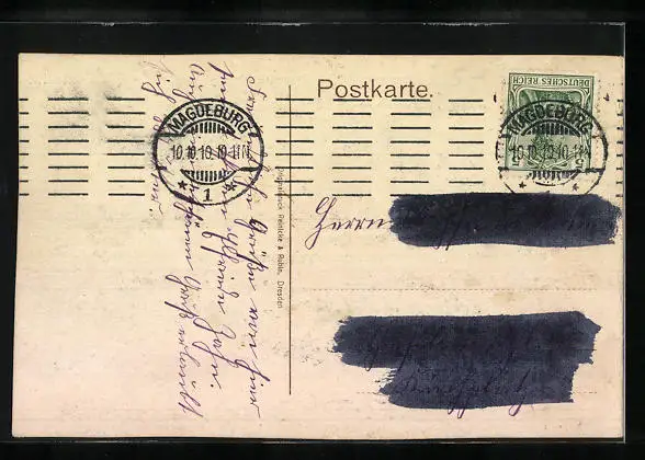 alte Ansichtskarte, gelaufen 1910, Stempelspur, Abriebspuren li. Kante, guter Zustand