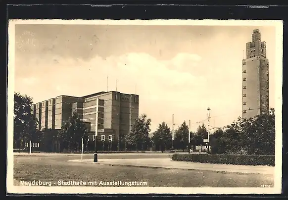 AK Magdeburg, Stadthalle mit Ausstellungsturm