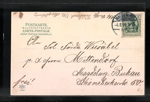 gelaufen 1909, rückseitig Klebe- und Papierreste, guter Zustand
