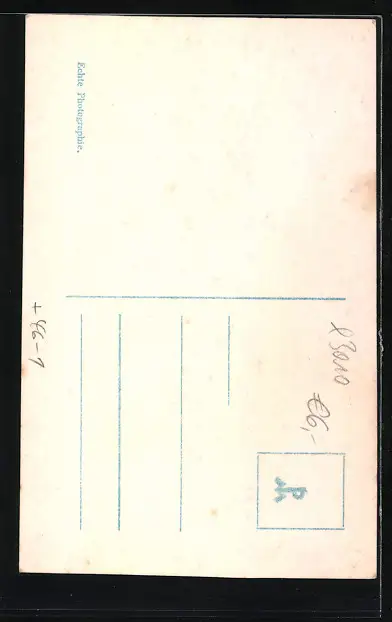 Personenbezogene Daten auf der Rückseite der Karte wurden durch blauen Textmarker unkenntlich gemacht. Die blauen Stellen sind auf die Vorderseite durchgeweicht und wirken sich negativ auf das Postkartenfoto aus