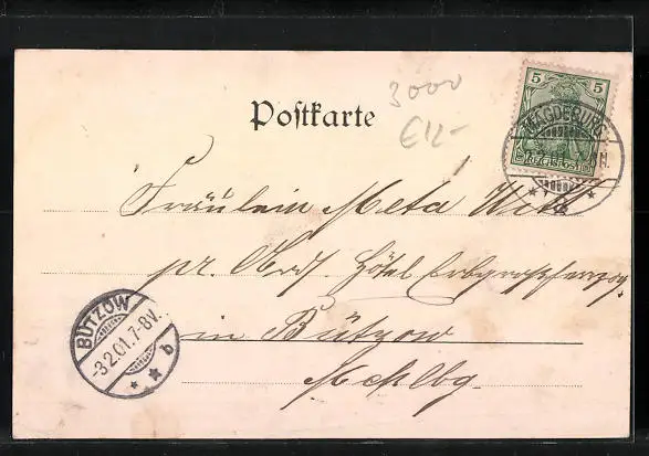 alte Ansichtskarte, gelaufen 1901, Knick unten li. bis mittig, guter Zustand
