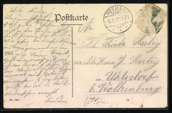 alte Ansichtskarte, gelaufen 1910, Briefmarke entfernt, guter Zustand