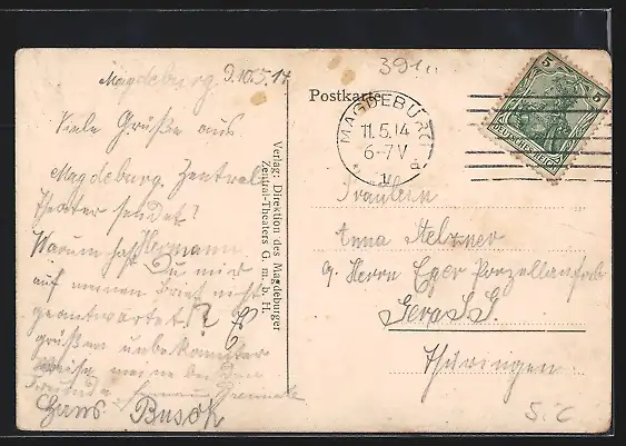 alte Ansichtskarte, gelaufen 1914, Stempelspur, guter Zustand