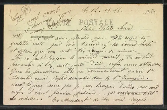 ungelaufen, Rückseite beschrieben 1918, guter Zustand