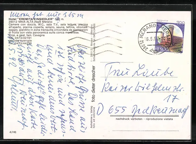 AK Maia Alta (Naif) Merano, Hotel Einsiedler in vier Ansichten