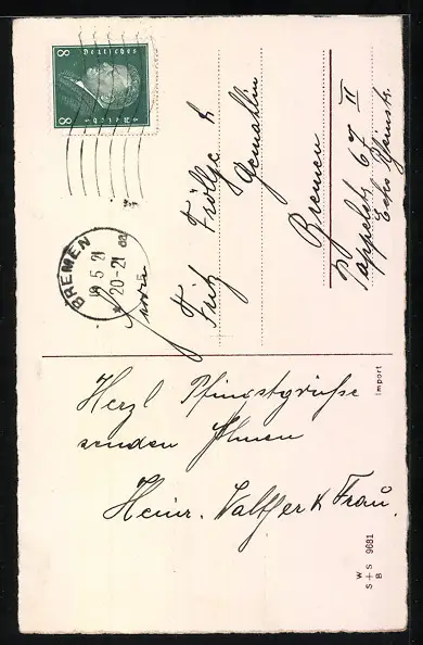 alte Ansichtskarte, gelaufen 1921, Stempelspur, guter Zustand
