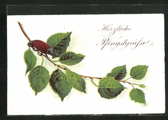 AK Maikäfer auf einem Zweig, Pfingstgruss