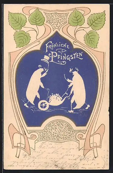 AK Maikäfer begegnen sich beim Spaziergang, Blätterornamente