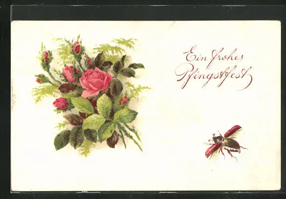 AK Maikäfer fliegt zu einem Blumenstrauss