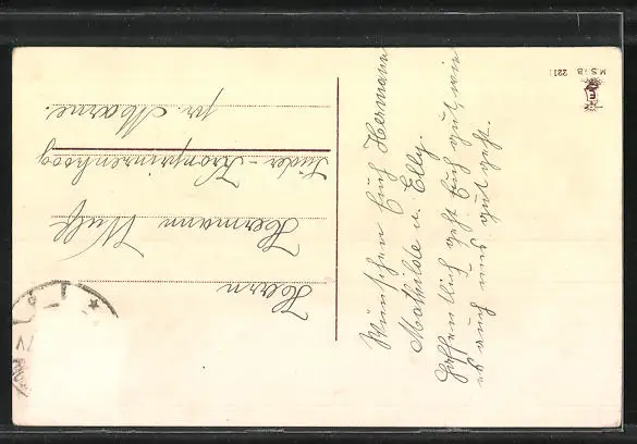 alte Ansichtskarte, gelaufen, Briefmarke entfernt, rückseitig Oberflächenschaden, guter Zustand
