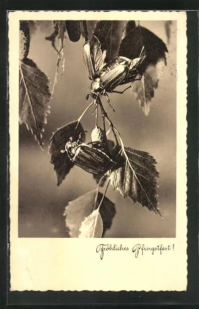 AK Maikäfer krabbeln auf einem Blätterzweig