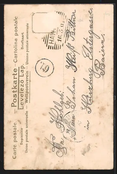 alte Ansichtskarte, gelaufen, Briefmarke entfernt, rückseitig Oberflächenschaden, guter Zustand