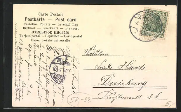 alte Ansichtskarte, gelaufen 1906, Abriebspur li. oben, guter Zustand