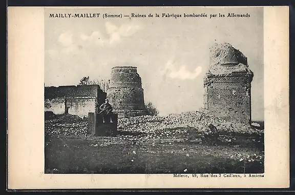 AK Mailly-Maillet, Ruines de la Fabrique bombardée par les Allemands