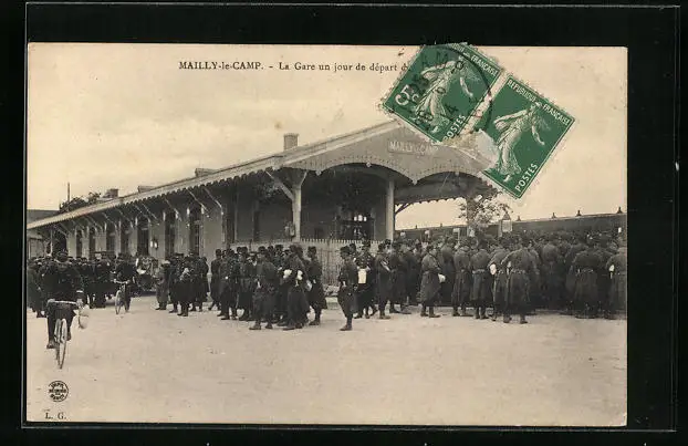 AK Mailly-le-Camp, la Gare un jour de départ