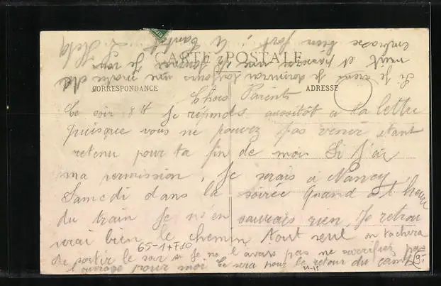 Personenbezogene Daten auf der Rückseite der Karte wurden durch blauen Textmarker unkenntlich gemacht. Die blauen Stellen sind auf die Vorderseite durchgeweicht und wirken sich negativ auf das Postkartenfoto aus
