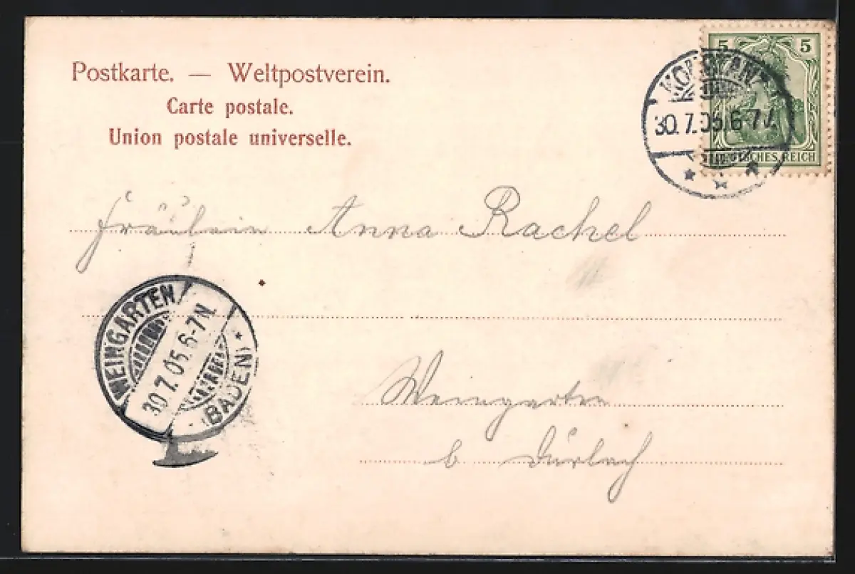 alte Ansichtskarte, gelaufen 1905, guter Zustand