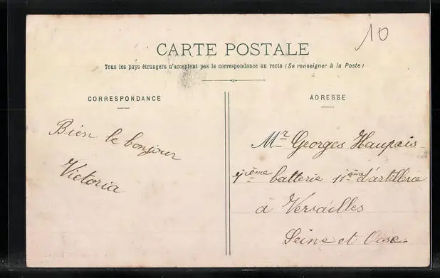Personenbezogene Daten auf der Rückseite der Karte wurden durch blauen Textmarker unkenntlich gemacht. Die blauen Stellen sind auf die Vorderseite durchgeweicht und wirken sich negativ auf das Postkartenfoto aus