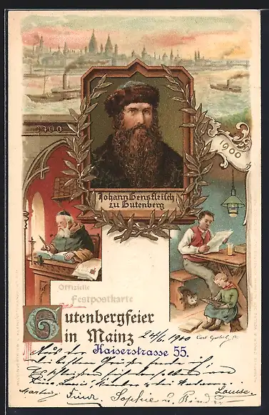 AK Mainz, 500. Gutenbergfeier, 1400-1900, Johann Gensfleisch zu Gutenberg