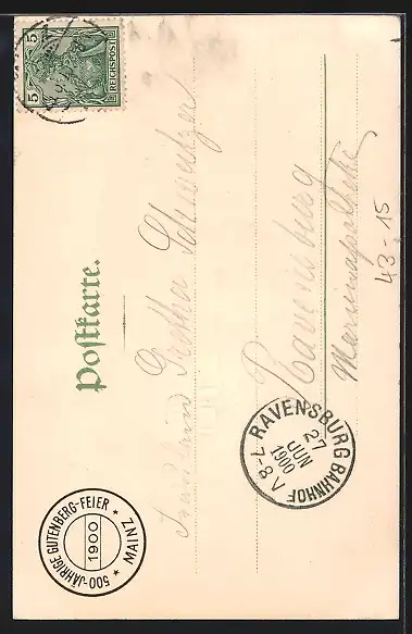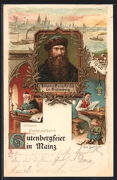 AK Mainz, 500. Gutenbergfeier, 1400-1900, Johann Gensfleisch zu Gutenberg