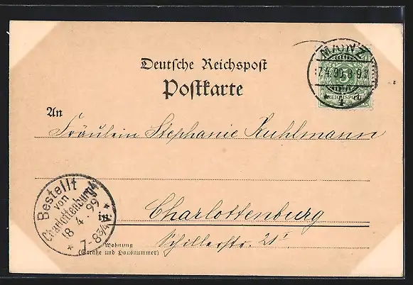 alte Ansichtskarte, gelaufen 1899, Stempelspur, guter Zustand