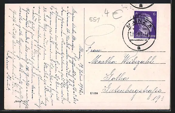 alte Ansichtskarte, gelaufen 1942, guter Zustand