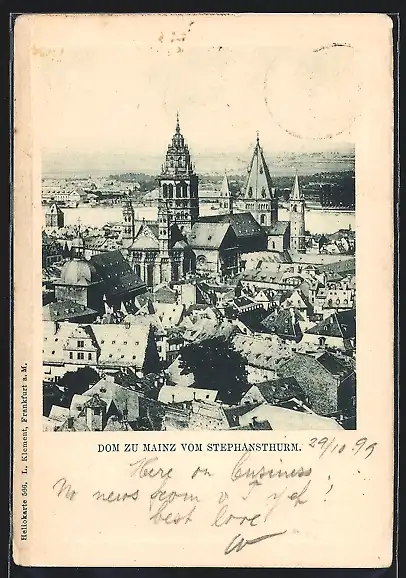 AK Mainz, Blick vom Stephansturm auf den Dom