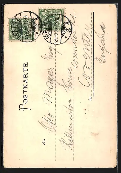 alte Ansichtskarte, gelaufen 1899, guter Zustand