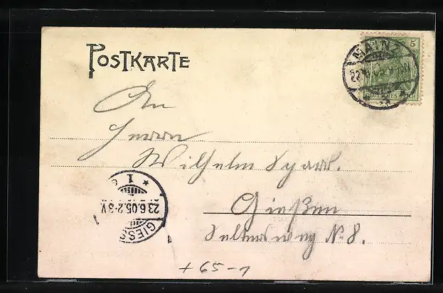 alte Ansichtskarte, gelaufen 1905, Stempelspur, guter Zustand