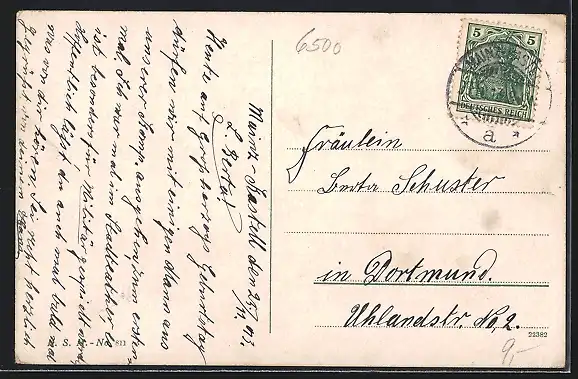 alte Ansichtskarte, gelaufen 1913, Eckknicke unten, Ecken bestoßen, Stempelspur, guter Zustand