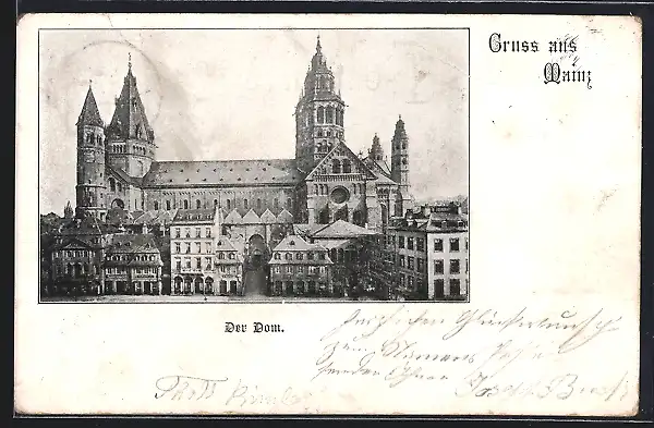 alte Ansichtskarte, gelaufen 1899, rückseitig Klebe- und Papierreste, guter Zustand
