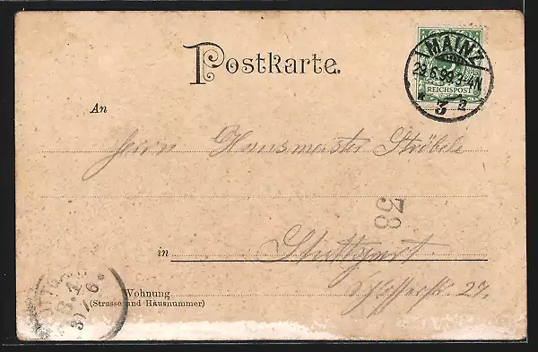 gelaufen 1899, rückseitig Klebe- und Papierreste, guter Zustand