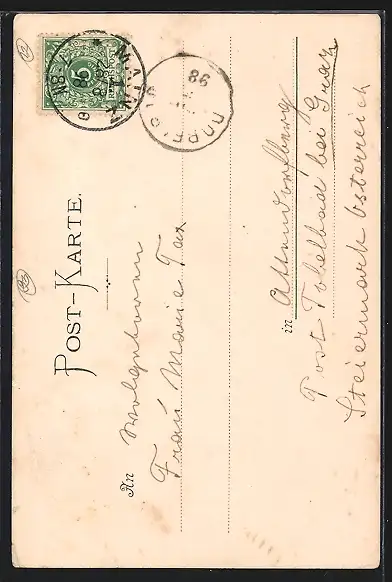 alte Ansichtskarte, gelaufen 1898, Stempelspur, guter Zustand