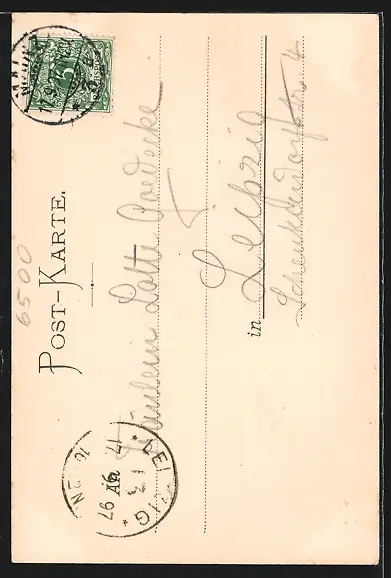 alte Ansichtskarte, gelaufen 1897, Stempelspur, guter Zustand
