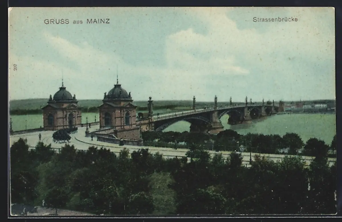 AK Mainz, Die Strassenbrücke über den Rhein