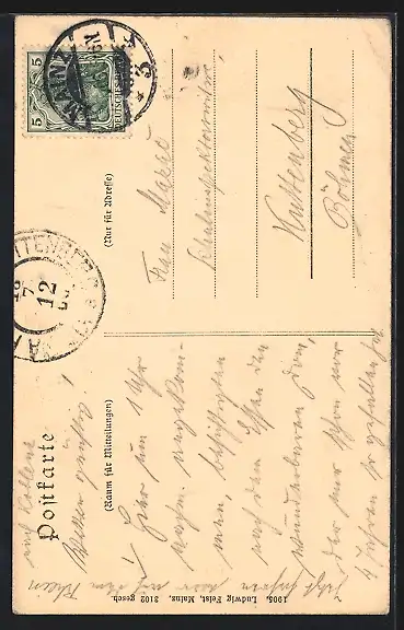 alte Ansichtskarte, gelaufen 1906, Eckknick li. oben, guter Zustand