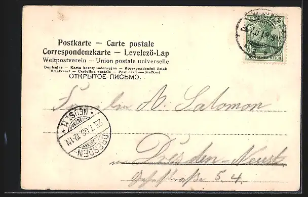 alte Ansichtskarte, gelaufen, Stempelspur, Albumspuren, guter Zustand