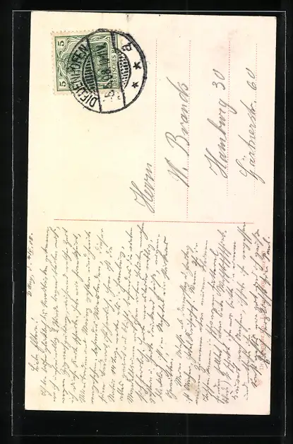 alte Ansichtskarte, gelaufen 1908, Stempelspur, guter Zustand